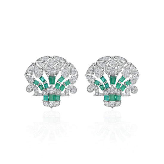 These statement studs blend rich emerald hues with the brilliance of white stones, a perfect mix of sophistication and sparkle.