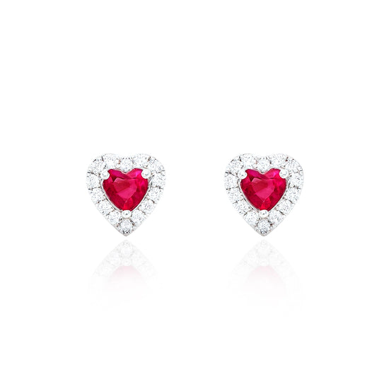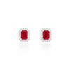 The Ruby Luxe Earrings feature emerald-cut ruby-red stones.