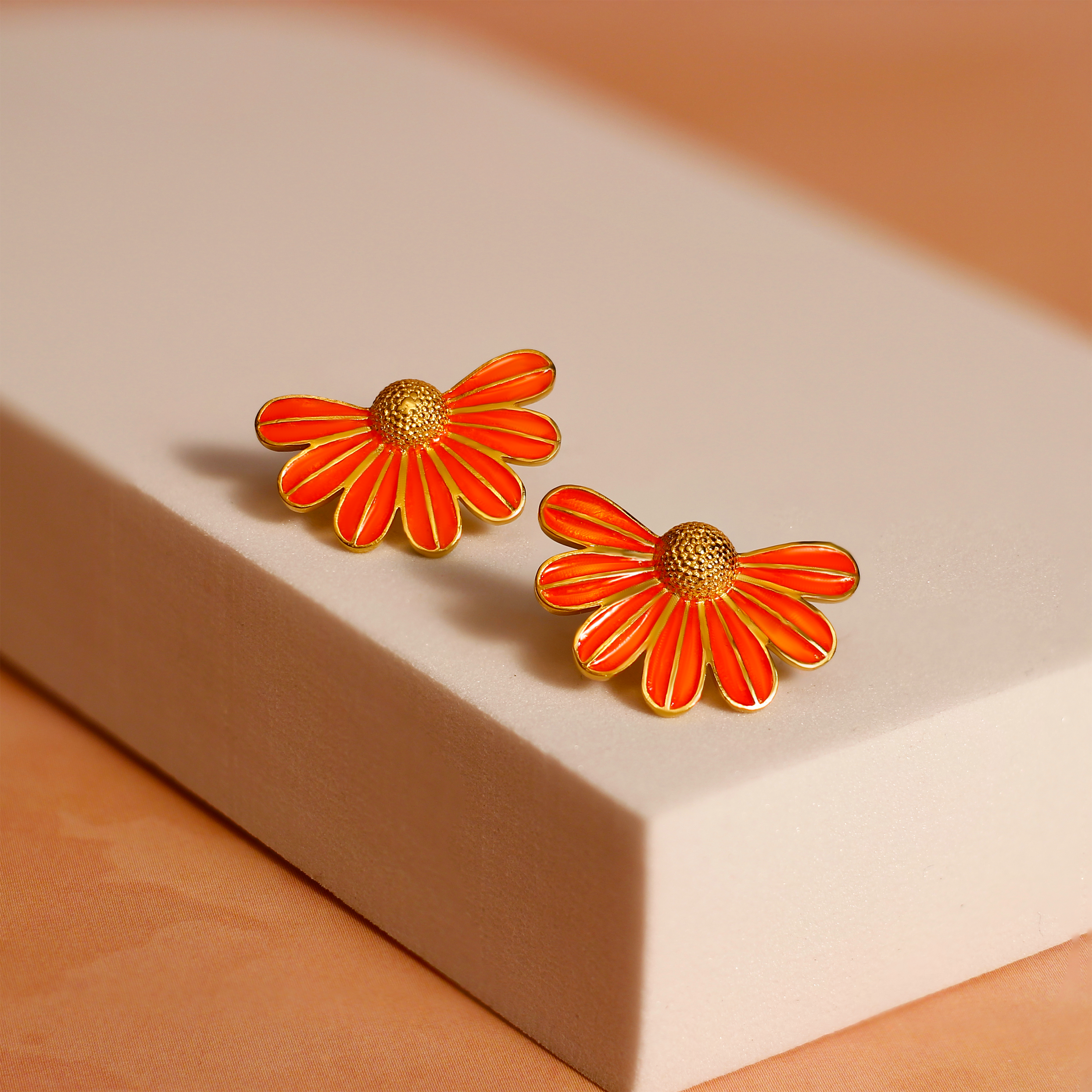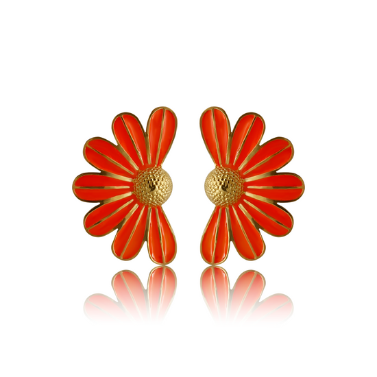 Add a burst of sunshine to your look with these bold enamel daisy earrings. Designed in vibrant orange with gold-toned detailing, they bring a playful, feel-good charm to any outfit. Perfect for those who like their jewellery fun, bright, and impossible to ignore.