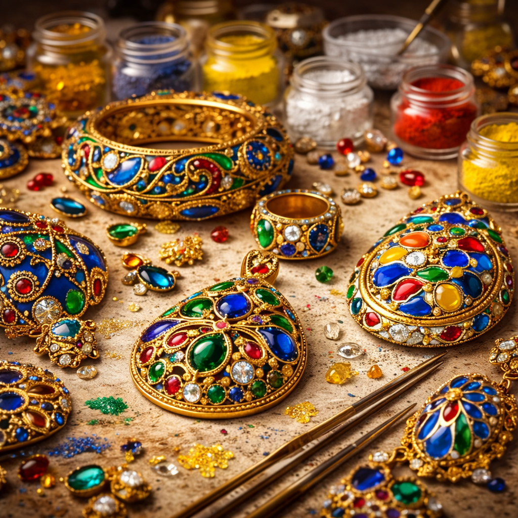 During the Mughal Empire, gemstones became expressions of imperial grandeur. Emeralds, rubies, and sapphires were set into jewellery that spoke of power, refinement, and divine favour.