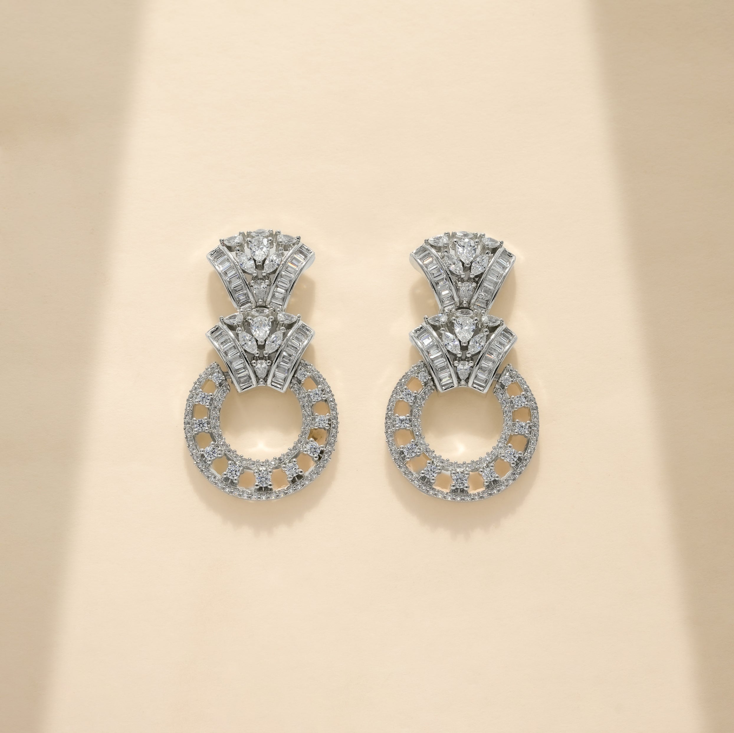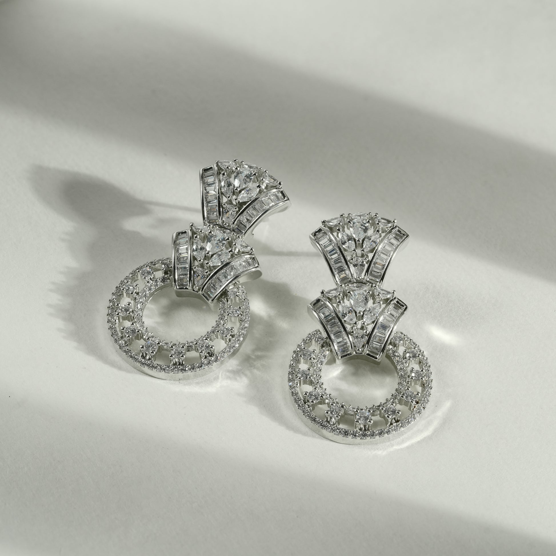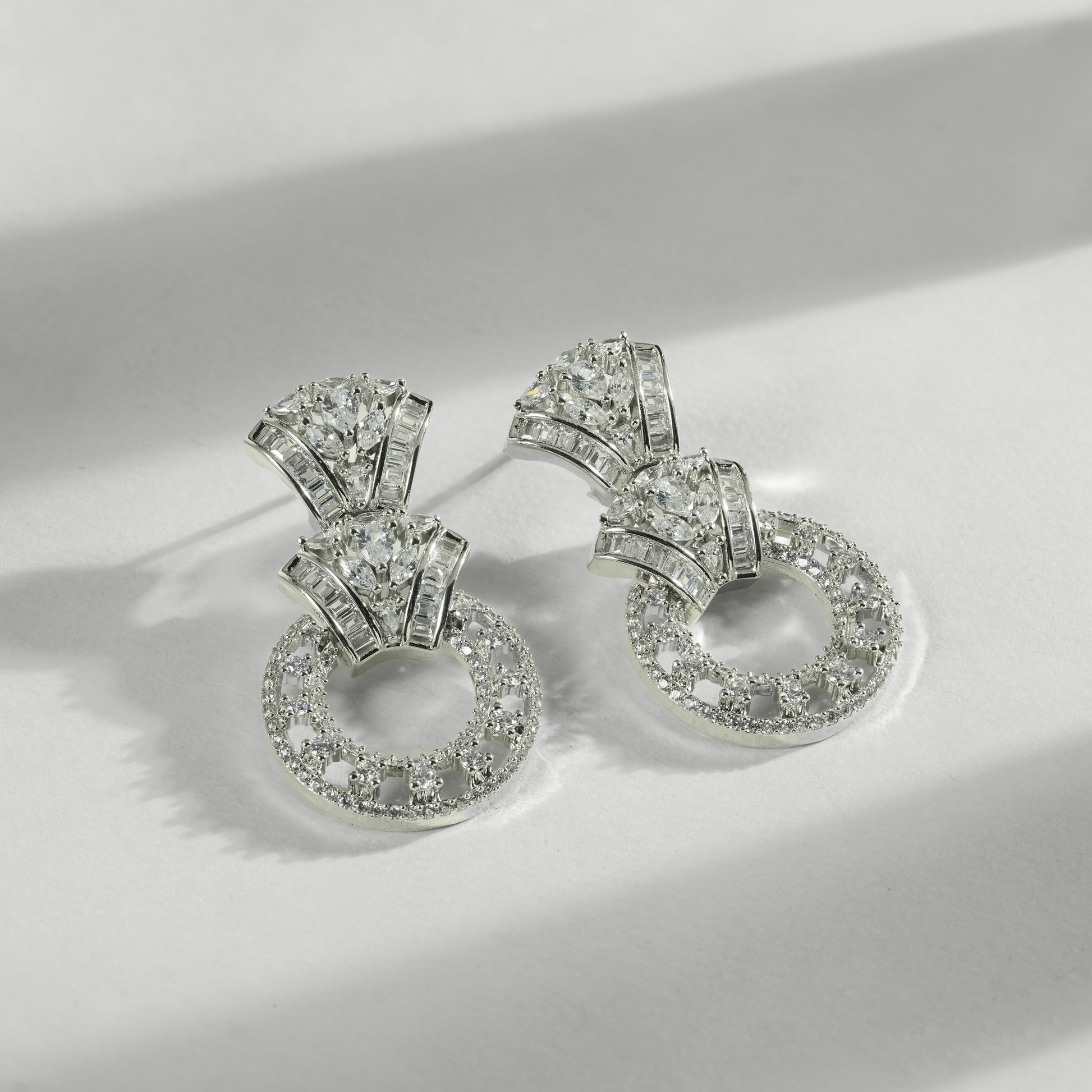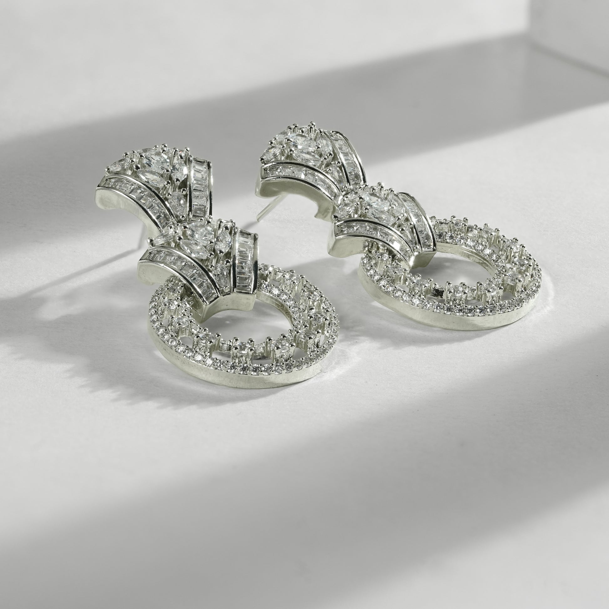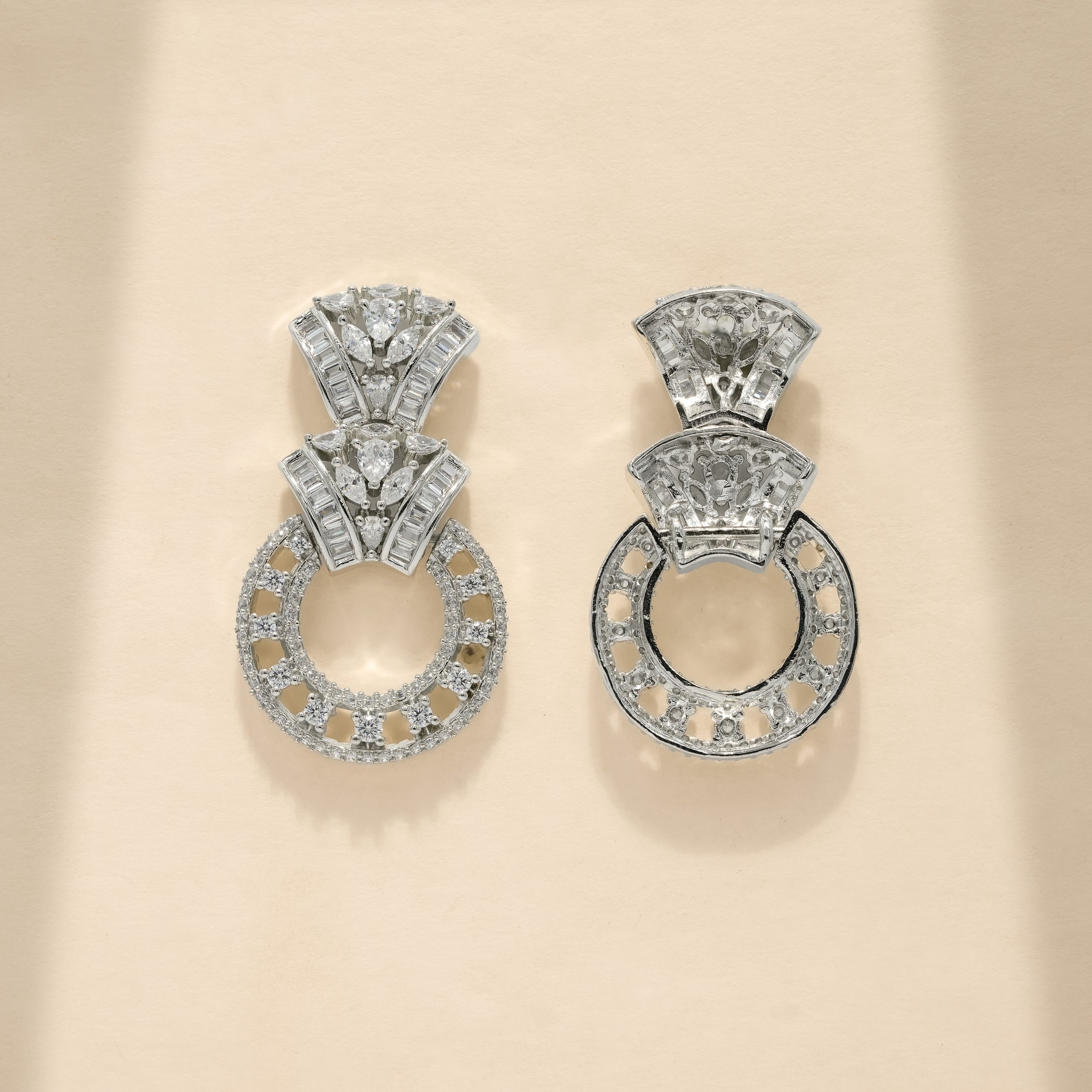 A sculptural necklace set defined by architectural layering and precise alignment. Crafted in real silver, the design balances structured geometry with refined brilliance, creating a statement that feels deliberate, composed, and confidently distinctive.