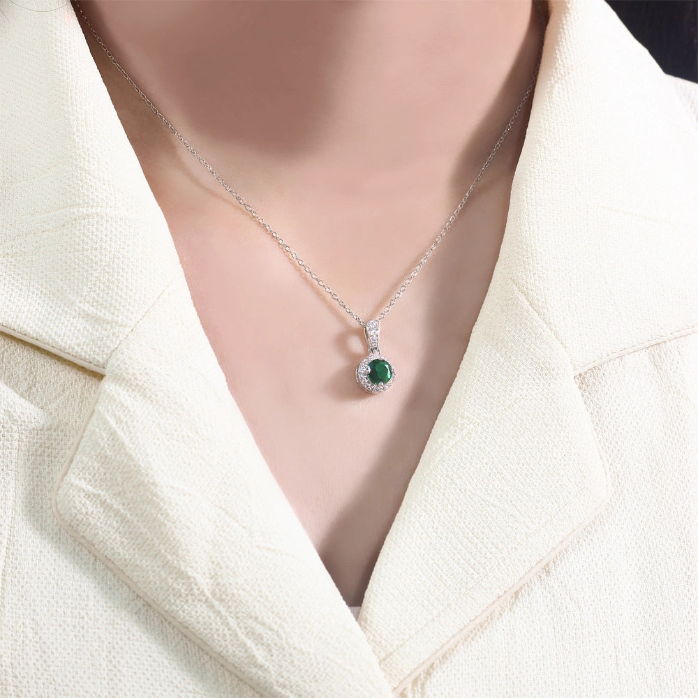 The pendant features a luminous emerald green stone cradled in a aura of shimmer.  Layer it or let it shine solo.
