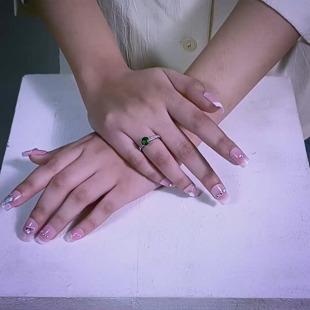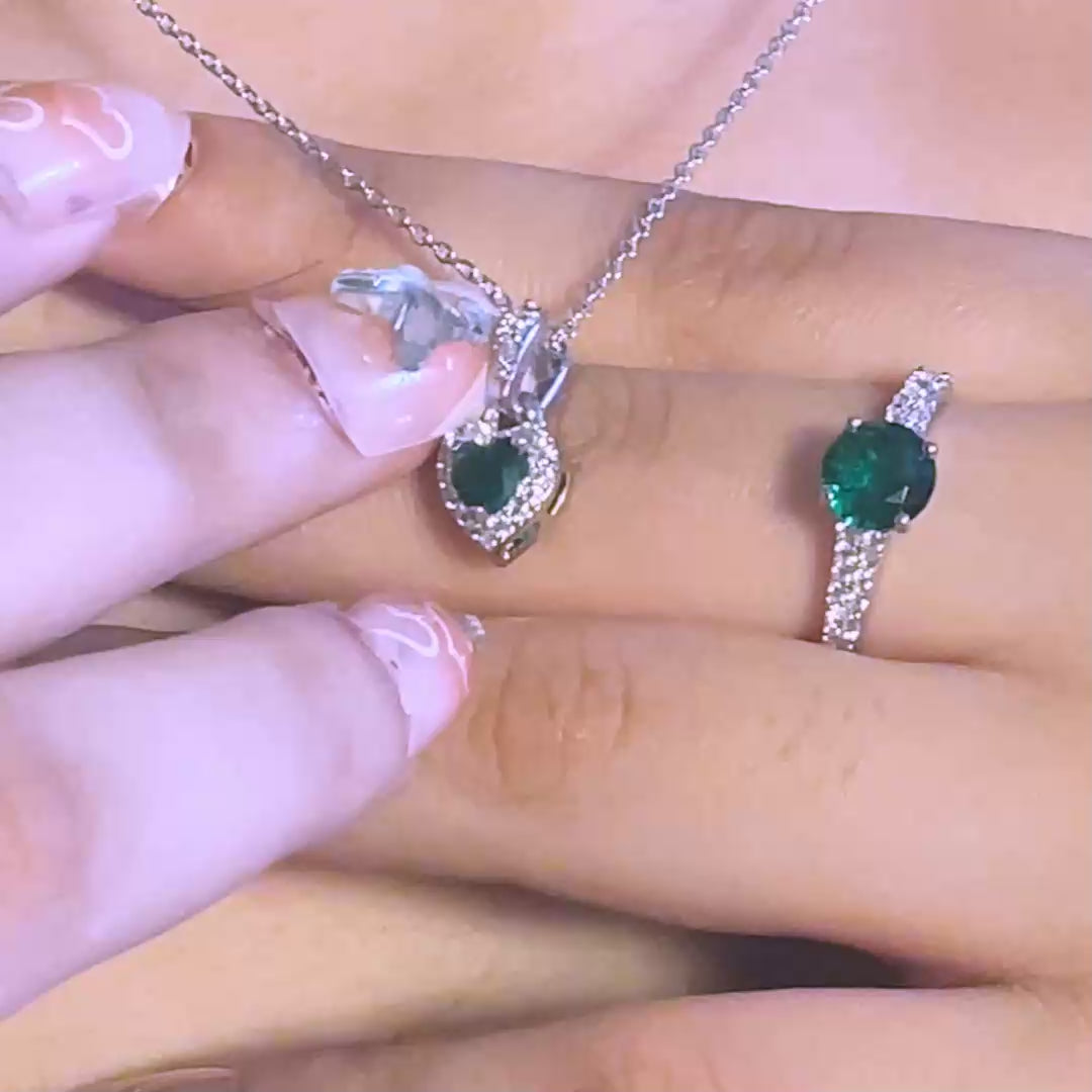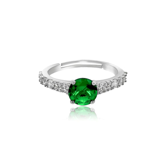 A spark of green that feels like a secret only you get to wear. This vivid emerald-style stone glows with bold, confident energy, balanced by a row of shimmering accents.