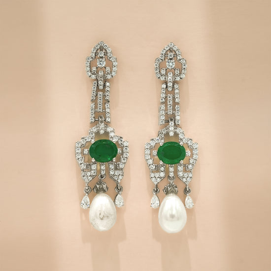 These one-of-one drop earrings combine rich green stones with soft pearl drops, linked through a structured, hand-set design in 92.5 silver. The contrast of form and flow creates depth and presence, making this single pair a meaningful expression of individuality and thoughtful gifting.