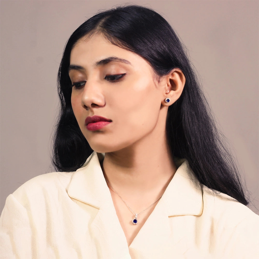 View compareSapphire Round - 92.5 Silver Pendant Set