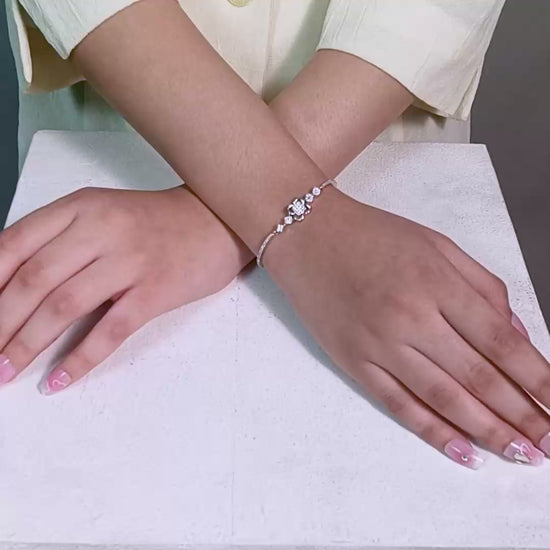 A little bloom, a little sparkle - and suddenly your wrist feels like poetry in motion. The petal-inspired center motif glows with delicate brilliance, highlighted by a trail of shimmering stones