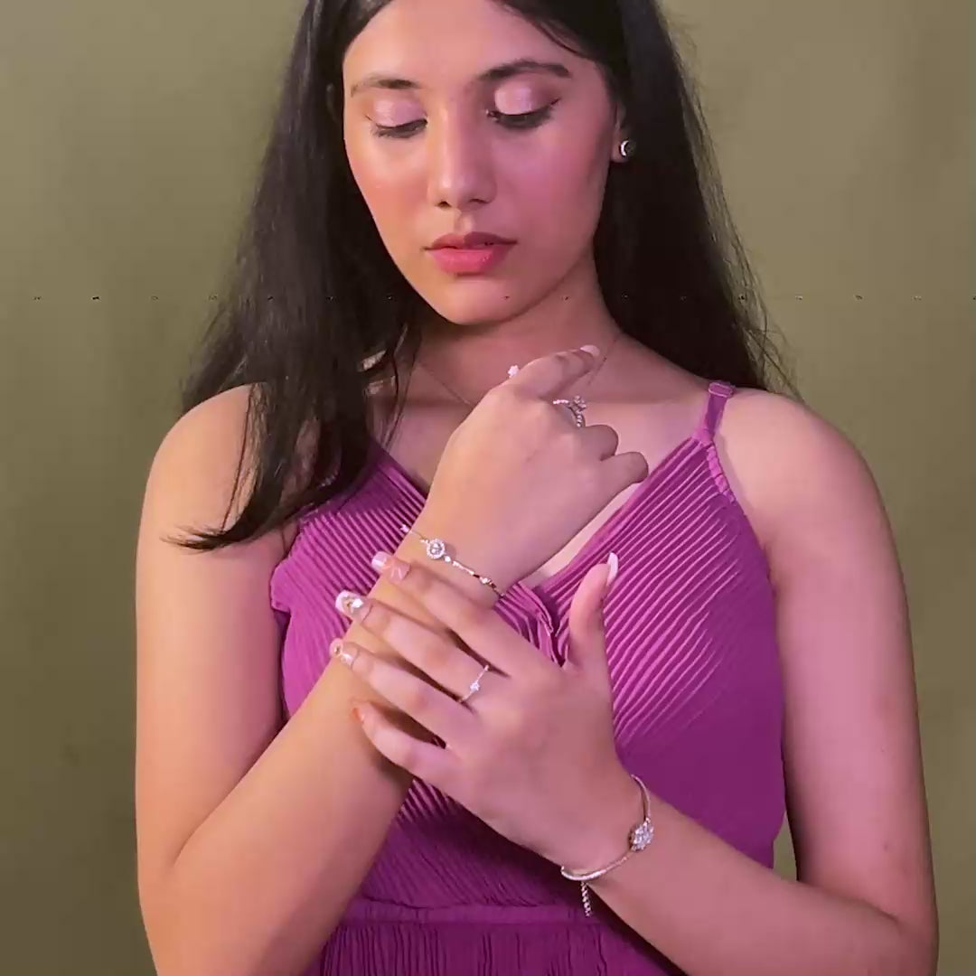 A circle of light that feels like a quiet, confident glow on your wrist. The radiant centre aura catches every flicker of brightness, while the sleek, stone-lined band adds a soft whisper of elegance with a playful wink.
